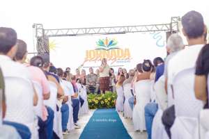 O segundo dia da Jornada Pedagógica da Educação aconteceu nesta quinta-feira (12), e contou com a presença da Prefeita Tia Júlia, que – acompanhada pela secretária municipal de Educação Renilda Pereira e pela adjunta da pasta Ana Holanda – fez questão de prestigiar os profissionais da área, no ginásio da Escola Municipal Marinete Neves, situada no bairro Vila Maria.